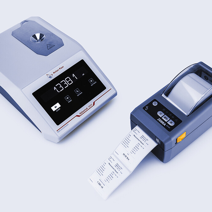 Abbemat 实用型台式折光仪通过选配标签打印机简化了结果文档,可快速可靠地打印输出。这样就无需手动复制数据,降低了转录错误的风险,并确保了所有记录的测量值准确且可追溯。