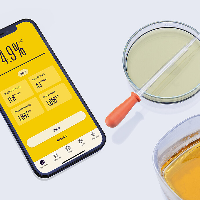 - 通过应用程序对啤酒、葡萄酒、烈酒、酒精气泡水和康普茶执行测量