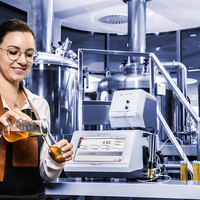 测量系统中包含的酒精分析系统可以在不受其他样品成分影响的情况下测定啤酒、葡萄酒、烈酒、利口酒和清酒中的酒精含量。通过 Alcolyzer 模块,它们不需要任何校准模型,而是根据独特的选择性 NIR 吸收方法直接测量酒精。由于不需要蒸馏,其获得测量结果的速度提高了十倍。