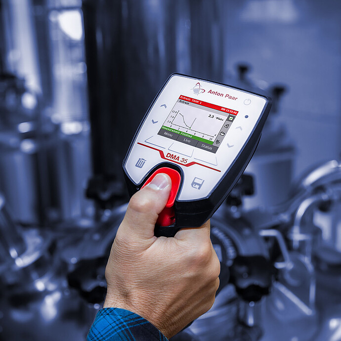 DMA 35 便携式密度计可测量麦芽汁中的浸出物含量,也可以用来密切监控发酵过程。CO₂|O₂ 测量仪可在存储罐中或包装外同时进行 CO₂ 和 O₂ 含量测量,并可以了解到啤酒中的氮气含量。小巧的酒精和浸出物测量仪 Alex 500 可以很方便地监测从麦芽汁到装瓶的整个生产过程。数分钟后即可得到结果 - 这种适用于微型酿造的啤酒设备即使对最小的啤酒厂而言也不可或缺。