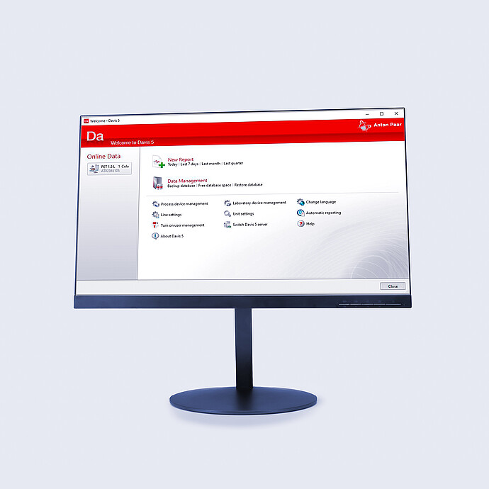 Davis 5 将持续记录由 Edge 7000 和 Edge 5000 过程控制器测定的所有传感器特定数据和产品特定数据。软件的现代界面设计非常直观,易于使用。