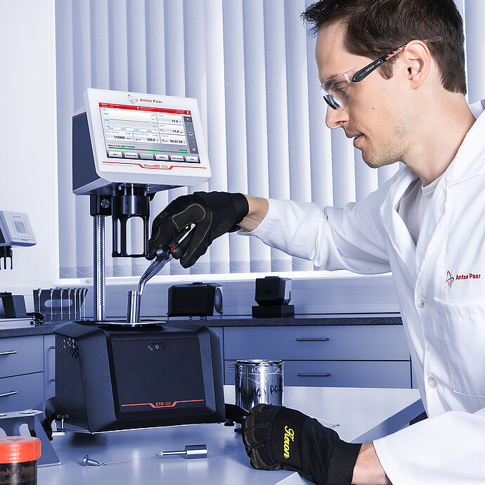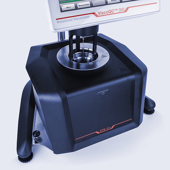 所设即所得。独特的 T-Ready™ 功能可确保测量始终处于正确的温度,从而节省额外的温度平衡时间。轻松设置测量方法并运行自动化测试。所有都通过 ViscoQC 显示屏进行控制。转子磁耦合和无与伦比的转子识别功能 Toolmaster™ 相结合,可实现方便、无差错的测量。高温黏度计装置 ETD 300 + ViscoQC 非常适合在 +25 °C 至 +300 °C 的高温下测量沥青、热熔胶和蜡。