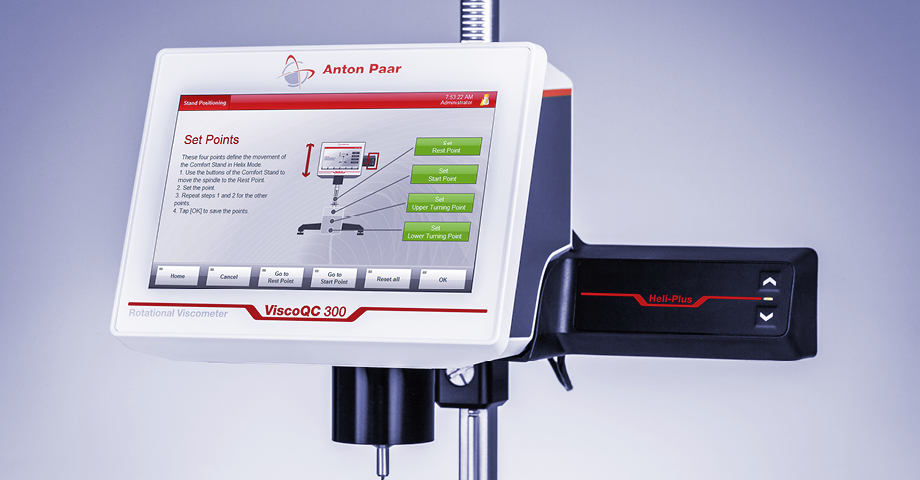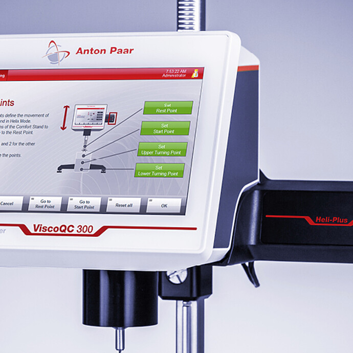 ViscoQC 的内置数字调平功能可确保 Heli-Plus 自动调平。通过在 ViscoQC 屏幕上数字化设定 Heli-Plus 的开始、浸入和反转位置,可实现测试过程的完全自动化。测试程序的标准化确保了黏度结果最高的重复性。由于不需要重复诸如测量开始位置的错误选择而导致的失败测量,生产期间的正常运行时间得以最大化。使用 ViscoQC 和 Heli-Plus 将为您提供更多时间来完成其他重要任务。