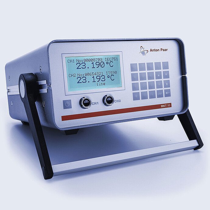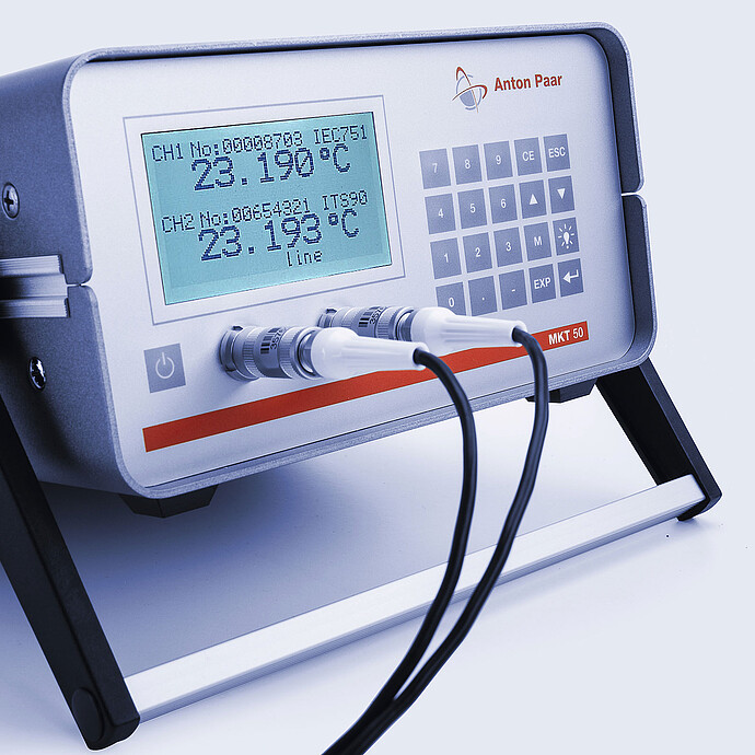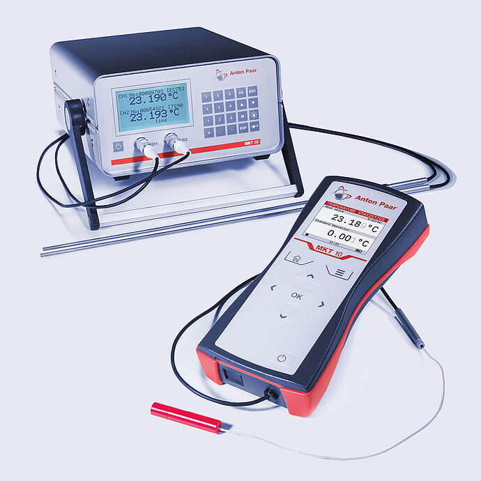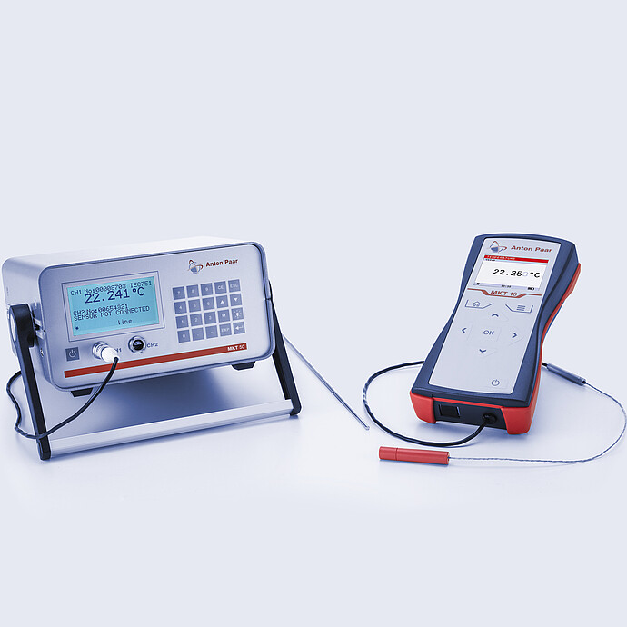 MKT 10 的分辨率为 0.001 ℃ (1 mK),测量不确定性为 0.01 ℃ (10 mK),而更高精度的 MKT 50 分辨率为 0.0001 ℃ (0.1 mK),测量不确定性为 0.001 ℃ (1 mK)。MKT 50 与多种铂电阻温度计 (PRT) 和标准铂电阻温度计 (SPRT) 兼容,而 MKT 10 配备了高精度焊接铂电阻温度计,便于进行准确的在线和现场测量。