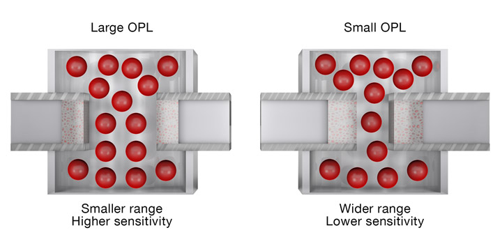 通过从预定义的 10 组光程长度 (OPL) 中选择 1 组光程长度,可涵盖最常见生产管线直径的各种应用。此外,L-Col 6100 可选择配备最多 3 种波长: