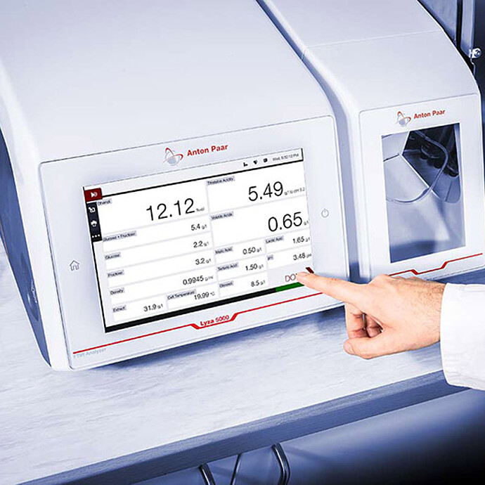 - 一次测量便可获取包括乙醇、糖和酸类含量在内的超过 15 个葡萄酒和葡萄汁参数结果。