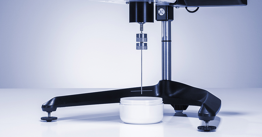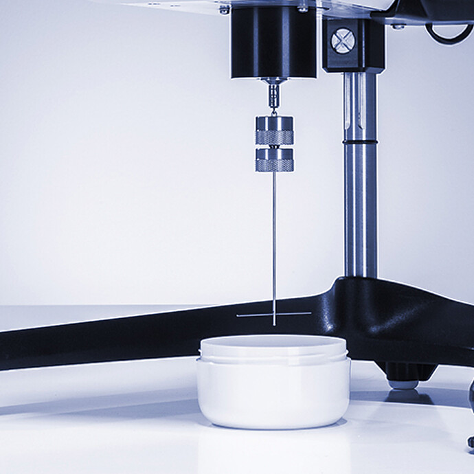 非流动性,高黏度样品(例如软膏、蛋黄酱和膨润土)需要特殊的测量技术。标准测量系统或转子会在测量时将空气通道引入样品中,导致黏度读数无意义,因为转子不被样品完全覆盖。如果不流动的样品不包含任何颗粒,则可以使用通过Heli-Plus控制T型转子或桨式转子进行测量。如果样品中的颗粒介于 0.1 mm 和 2 mm之间,则可以选择桨式转子:它们是高黏度的,因此可以直接在样品容器中进行测量。