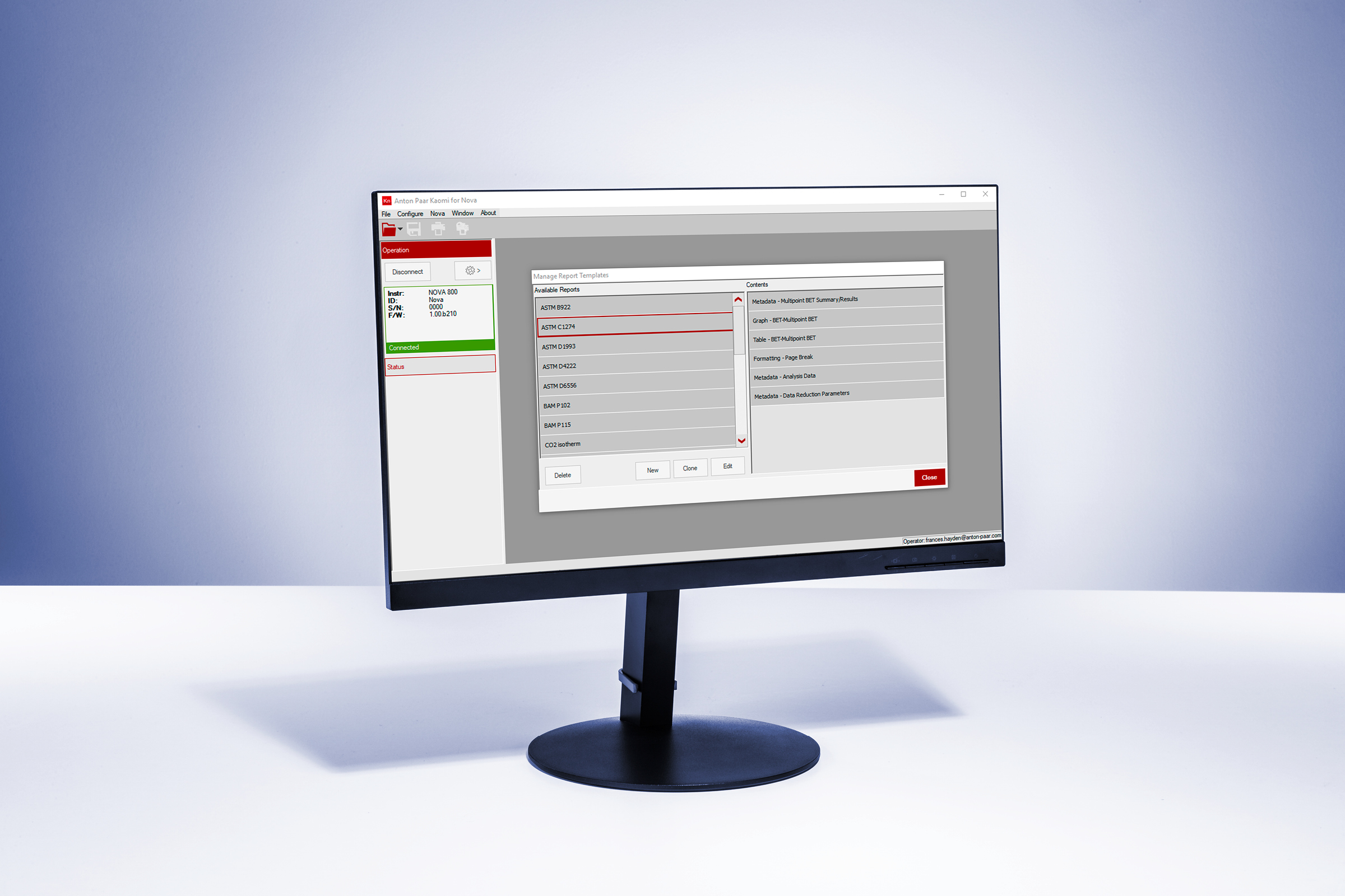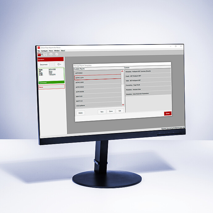 将仪器控制和数据处理与 Kaomi for Nova 相结合。轻松设置和执行分析,以及处理、报告和存储数据。通过一台电脑可控制多达四台 Nova BET 表面积分析仪。