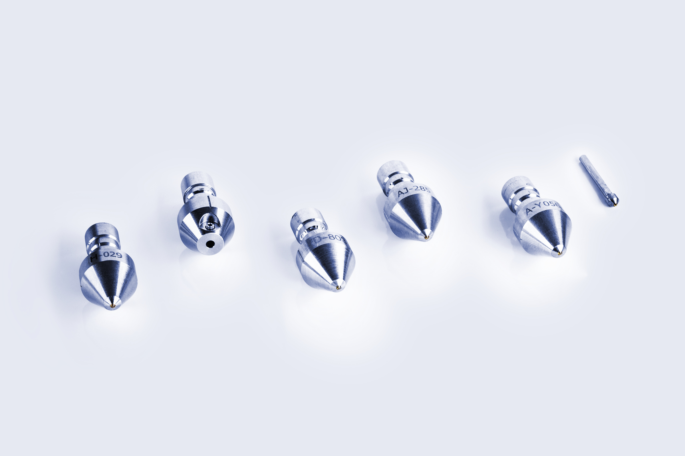 提供不同直径和角度的划痕针尖。针尖夹具还可用于需要使用小直径球形尖端、Berkovich 或维氏针头以及 6 mm 直径的应用。同一个针尖夹具可用于不同种类的针尖,专用的球夹具可用于不同尺寸的球。