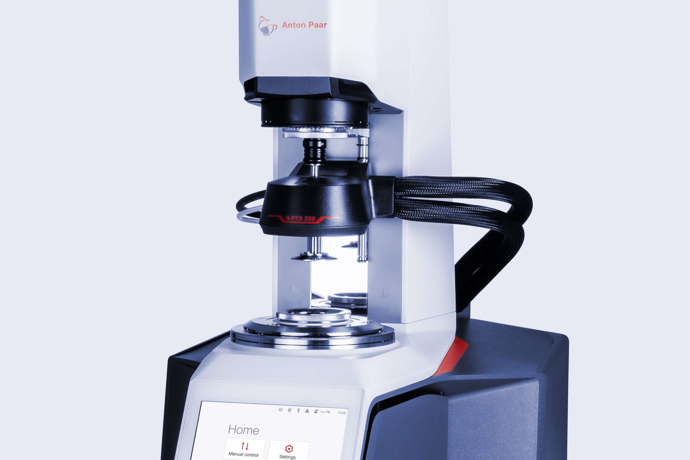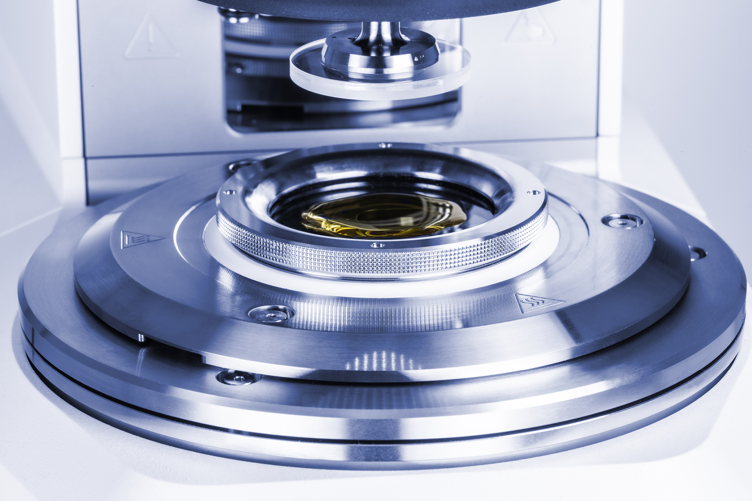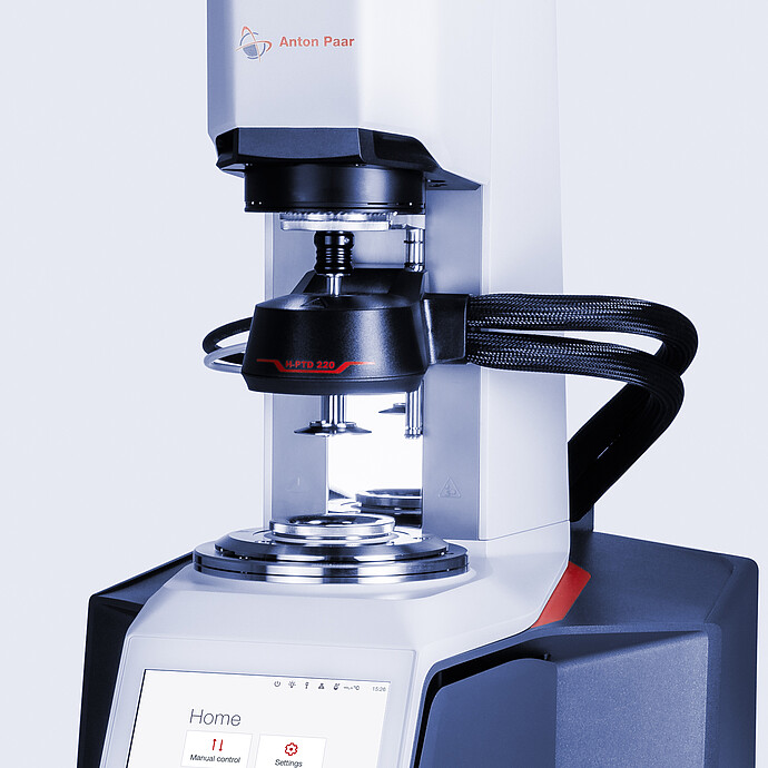 该装置包括可靠的Peltier主动控温罩、通用光学设备以及可以轻松更换下方玻璃板的Peltier温度控制设备。它们能够共同确保从 -20 ℃ 至 +200 ℃ 快速准确的温度控制。这种组合也支持用惰性气体吹扫以避免意外的化学反应,如氧化或降解,并减少 IR 光谱中的气氛水信号。或者,我们提供从环境温度到 300 ℃ 的电加热温度控制,以及各种直径的一次性测量转子(例如,用于固化后无法取出的样品)。