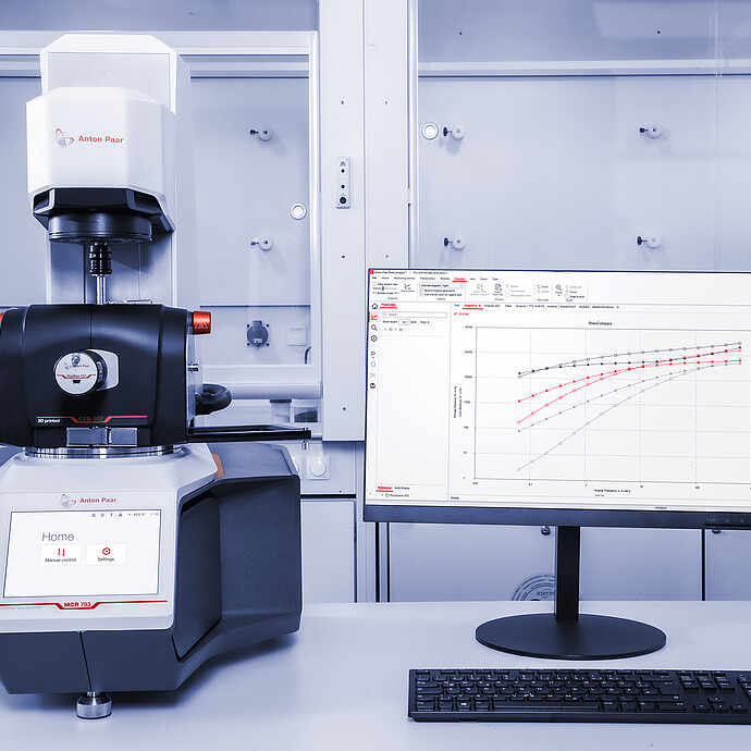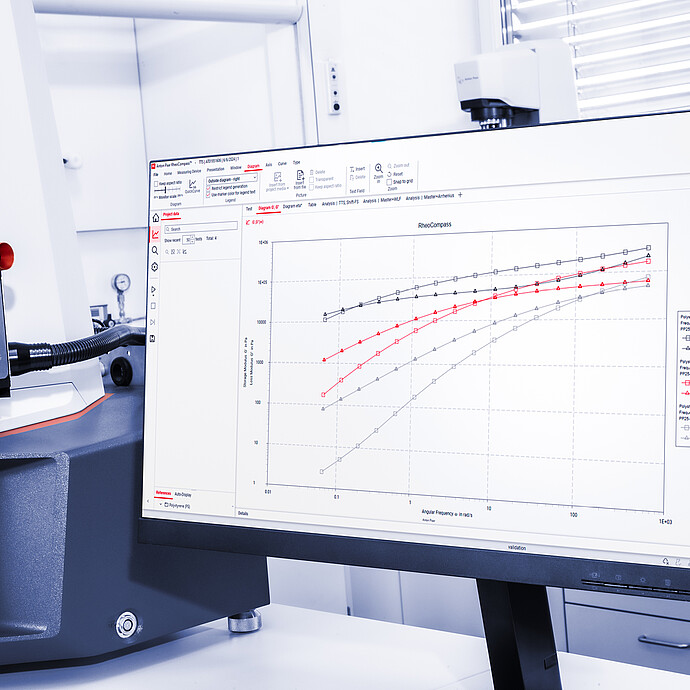 RheoCompass 为流变学研究提供了充分的灵活性和功能支持。可详细编程确定测试程序和分析方法。这样您就可以灵活地定义新的、目前未知的特性,并使其适应当今行业和学术界前沿的流变学研究的特殊要求。可以记录、显示、分析和导出驱动器、传感器和瞬态数据(例如波形、利萨如曲线、傅立叶系数,周期内变量)。
