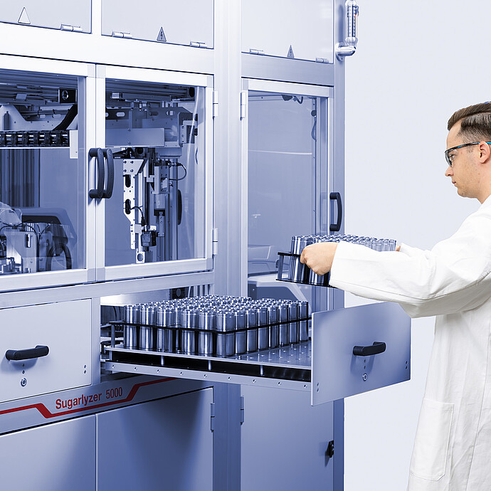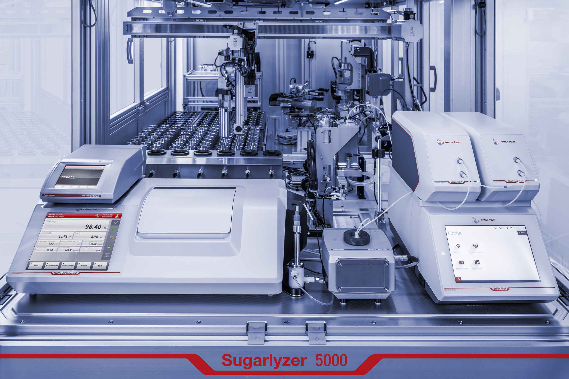 Sugarlyzer 5000 结合了多种先进的 Anton Paar 仪器,是一个即用型工厂控制实验室,能够可靠地进行糖分析过程的所有阶段。这包括对所有液体、糖浆、糖蜜和糖晶体样品的分析。