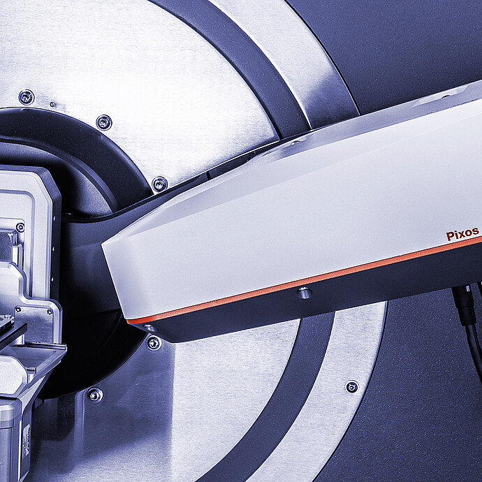 Pixos™ 探测单元的探测器能够提供无与伦比的测量分辨率,这要归功于 55 µm x 55 µm 的像素尺寸 — 这是市场上用于XRD 平台更小的。小像素尺寸与 XRDynamic 500 的 TruBeam™ 理念中特有的扩展测角仪半径相结合,意味着利用标准 Bragg-Brentano 配置进行测量时,可以实现比传统衍射仪提高 20% 的测量分辨率。