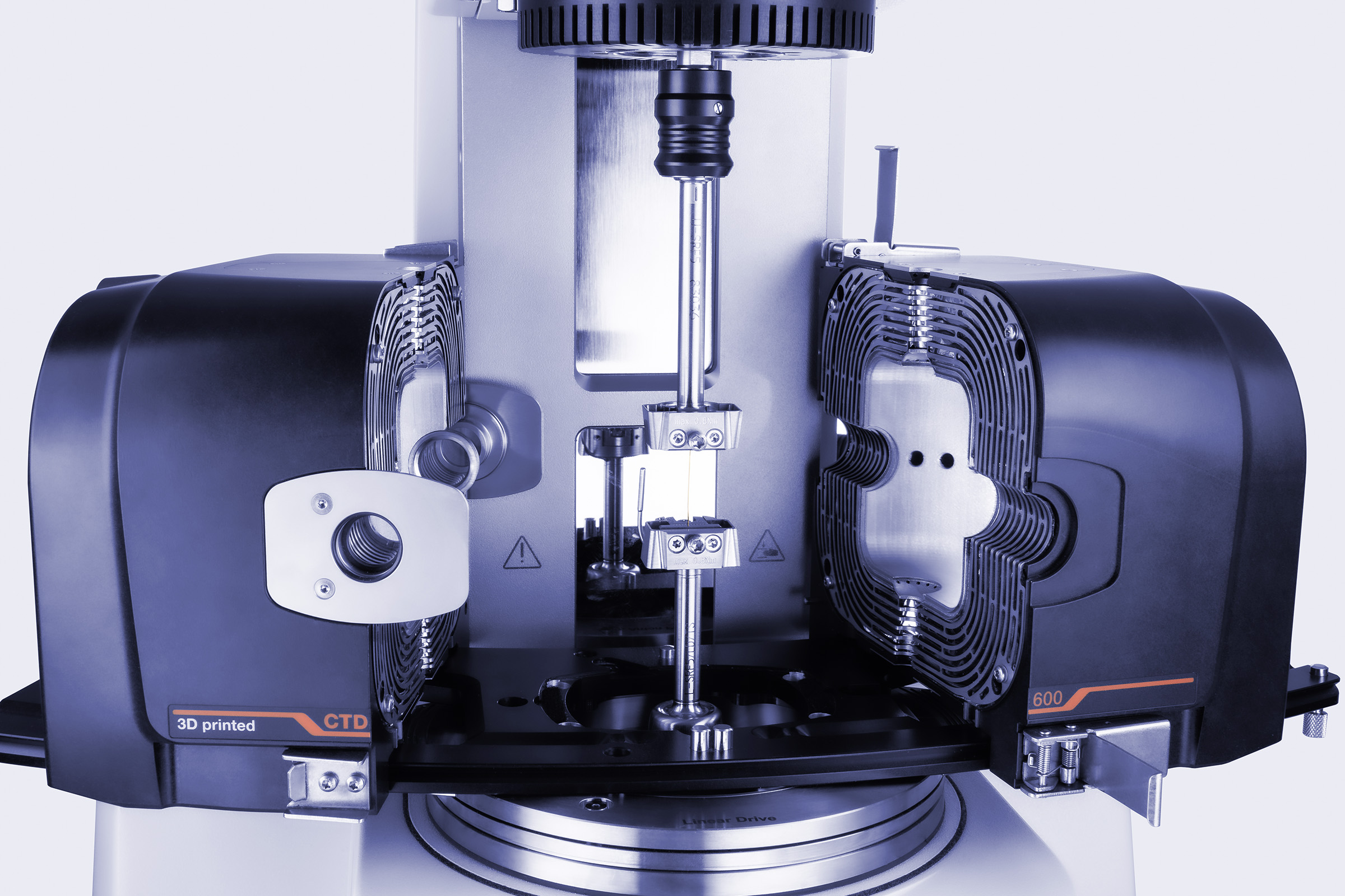 按您所需打造出的 UTM Micro:  一台机械测试机,或结合了多种方法的多功能测试仪 - 流变仪、摩擦计和动态机械分析设备,能够以光学方式进一步研究组件的行为。标配集成中已包含引伸计和称重传感器。
